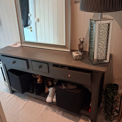 Veldig fin og velholdt skjenk teak med fire skuffer og to rom med hyller 🤎 Nydelig møbel.