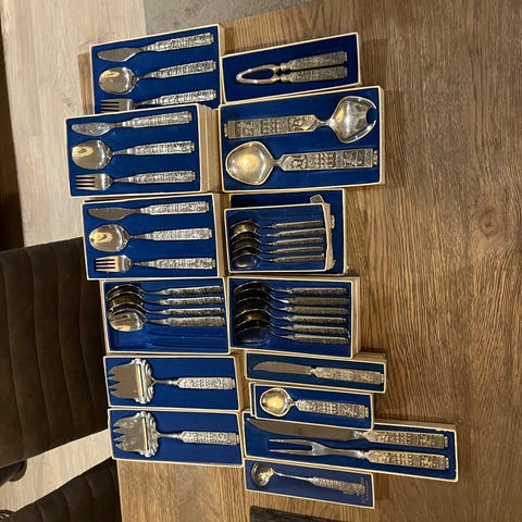 6 skjeer i eske kr. 300