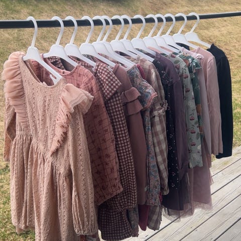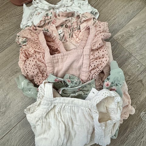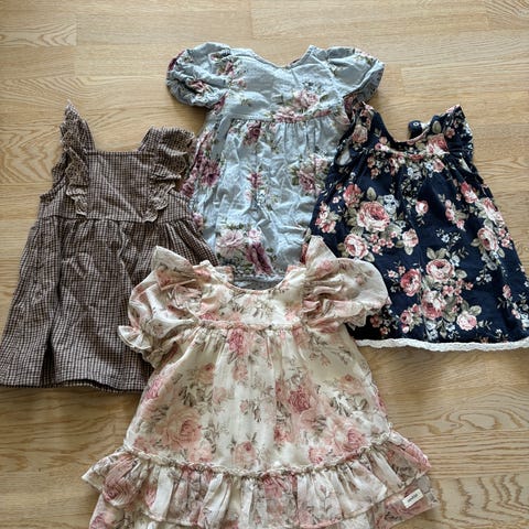 Prisen på kjolen er fra 80 til 200 kroner per stykk. Pakkepris 1500 Newbie barneklær for jente i størrelse 80-86. Plaggene er i flerfarget mønster med blomsterdetaljer. Passer til hverdagsbruk og ulike anledninger for barn i denne størrelsen. Klærne har mykt materiale som gir god komfort for barnet.