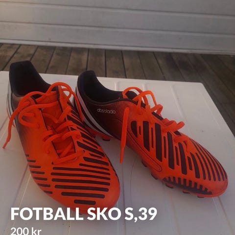 fotballsko i størrelse 30. brukt et par ganger så fremstår som nye, men er hvite og har blitt litt møkkete.