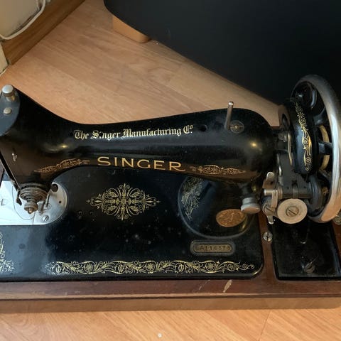 Dette er en gammel symaskin av merket Mundlos AG, modell 99.
