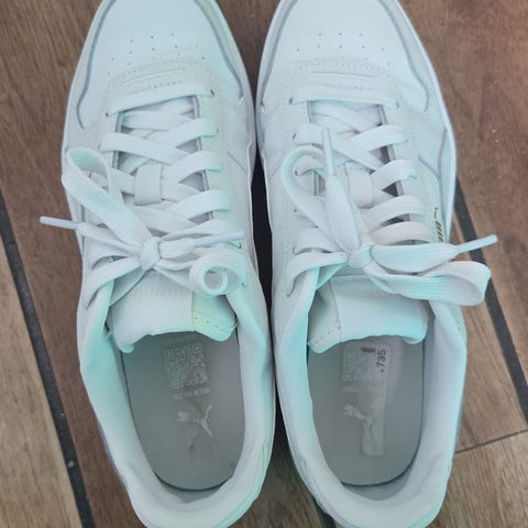 Puma sneakers joggesko i størrelse 39. Modellen er lave joggesko i hvit farge med snøring. Puma-logo på siden. Skoene har såle i gummi og innersåle merket SoftFoam for mykere demping. Egner seg til hverdagsbruk og lett aktivitet.