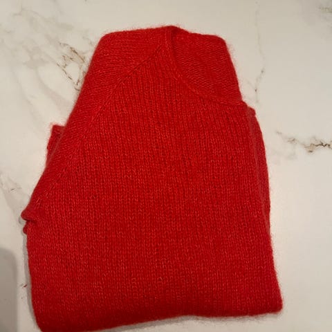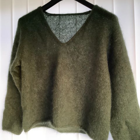 Hjemmestrikket Cumulus bluse selges. Lys grønn, størrelse M.