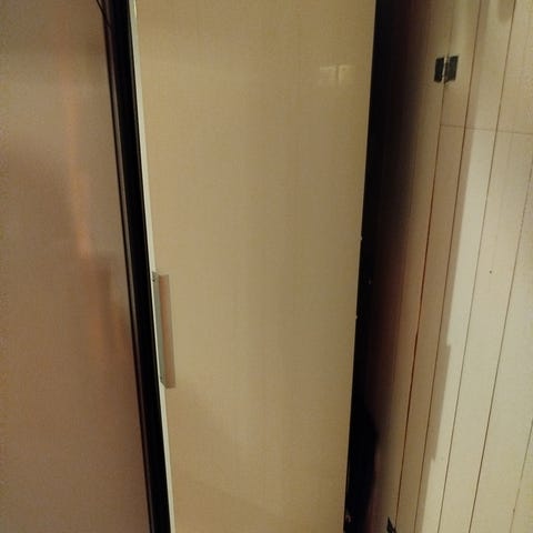 Kombiskap, der termostaten på kjøledelen er ødelagt, og som nå er blitt et fryseskap som holder -10 grader.