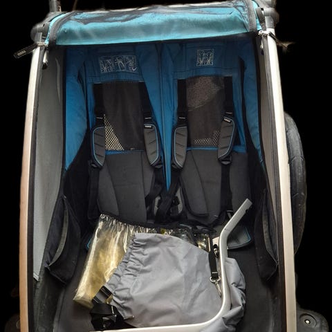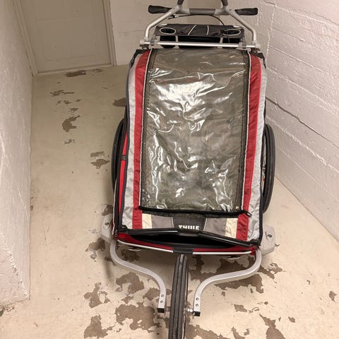 Selger Thule chariot sport 2 sykkelvogn med plass for to barn. Godt brukt med noen bruksmerker her og der. Stoffet har preg av solbleking. Vognen fungerer som den skal.