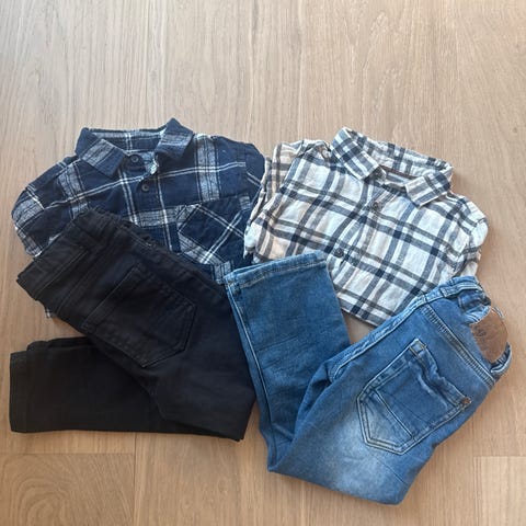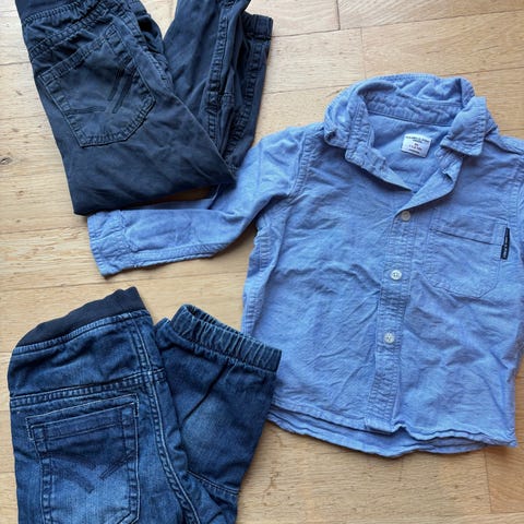 To skjorter og tre bukser som er lite brukt i størrelse 3-4 år.