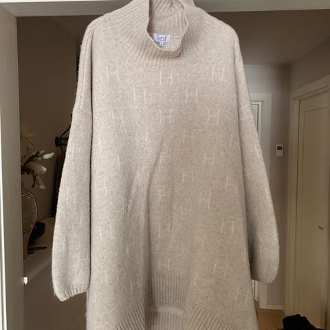 HÉST høyhalset genser for dame i beige ull Genseren har høy hals. Kort model, ingen bruks merker :)