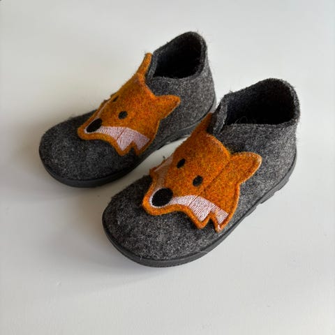 Superfit Happy Octi filttøffel med morsomt reveansikt. Perfekt innesko til barnehage, skole og hjemme. Antisklisåle, lette å ta på med en stor borrelås og luftehull i sålen for god varmebalanse.