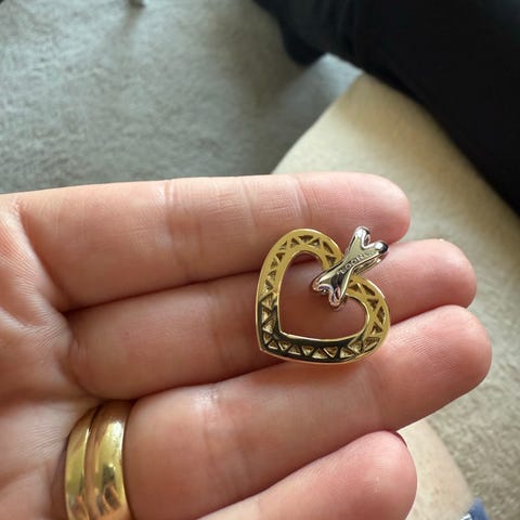 Nydelig roségullhjerte, 585, med små diamanter.