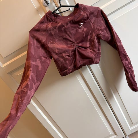 Materialet er et teknisk, fukttransporterende stoff merket «Dry», egnet for treningsformer som fitness og annen innendørs og utendørs trening. Kort, tettsittende passform som går til over midjen, med rund hals og diskret Gymshark-logo på brystet.