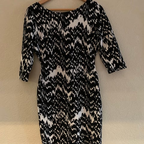 Svart med gull detaljer. Ser ut som topp å skjørt total lengde er 102cm.. brukt 1g.