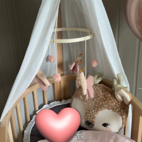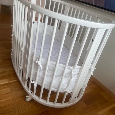 Pent brukt stokke mini med utvidelsesdel til sleepi, + sengehimmel.