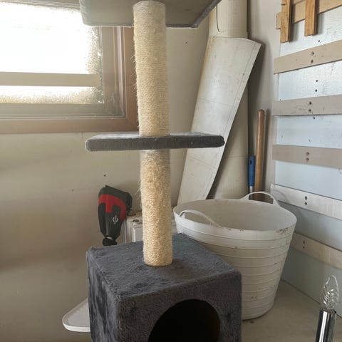 Katten min har to stativ og foretrekker et som er høyere. Så da står det ubrukt,