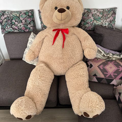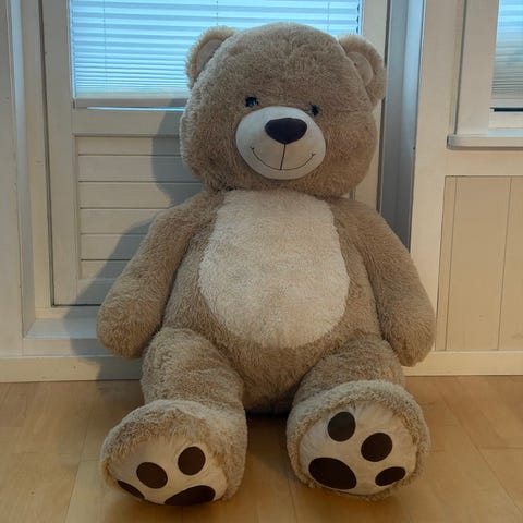 Teddykompaniet kosebamse i stor størrelse. Bamsen er myk og plysjaktig, med grå pels og lyse beige detaljer på poter, snute og ører. Egnet som kosedyr og dekorasjon på barnerom eller lekerom.