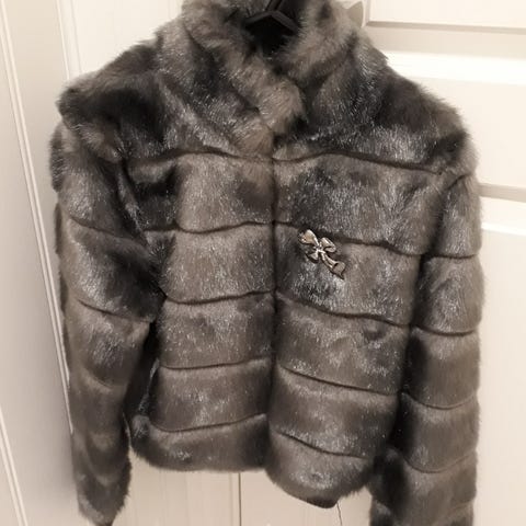 Lite brukt faux fur jakke. Ingen merker eller slitasjer. Passer en xs-s. Den er i utgangspunktet grå, men har noe lilla undertone som kommer frem i direkte sollys. Ta kontakt ved spørsmål!