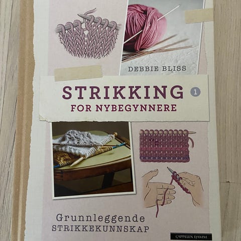 Debbie Bliss Strikking for nybegynnere bok. Inneholder grunnleggende strikkekunnskap med trinnvise illustrasjoner av opplegg, rette og vrange masker, enkle teknikker og små prosjekter. Egnet som innføringsbok for personer som vil lære å strikke fra start eller friske opp grunnleggende ferdigheter.