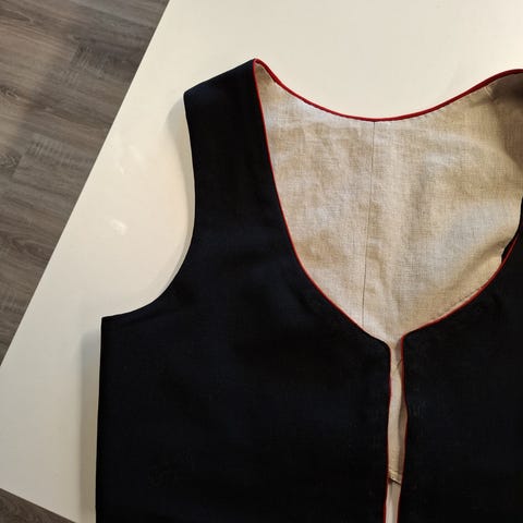 Håndsydd bunadvest til Midtbø Vest-agder-bunad.