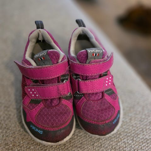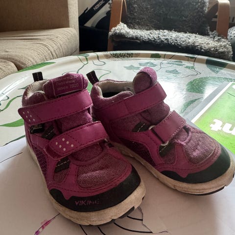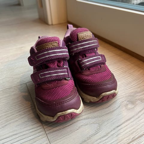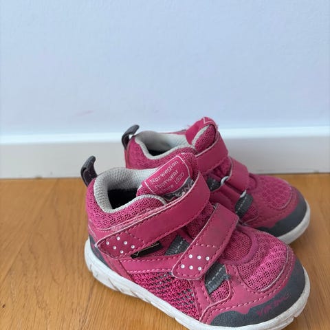 Viking joggesko for barn i rosa farge, til jente. Skoene har to borrelåsstropper over vristen for enkel justering og av- og påtaking. Overdelen er i tekstil med forsterkninger ved tå og hæl. Yttersålen har mønster som gir godt grep ved lek og hverdagsbruk. Egnet som hverdagssko og til uteaktivitet for barn. Brukt i barnehagen!