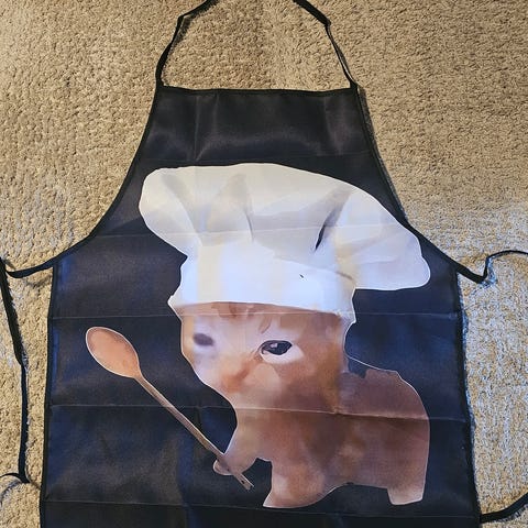 Selges helt nytt forkle med morsomt motiv.