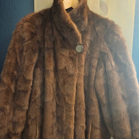 Fin Saga mink pelskåpe fra buntmaker Skjolden i Skien. Pent brukt. Ingen feil eller mangler. Selges.