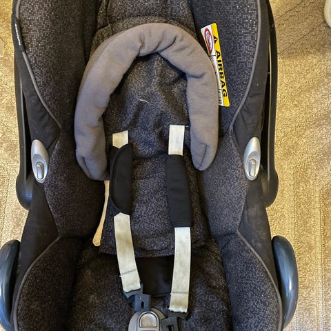 Maxi-Cosi barnesete med isofix-base for barn opptil 18,5 kg. Setet har integrert internsele og justerbar hodestøtte. Fargen er mørk grå. Medfølgende isofix-base gir enkel montering i bilen. Barnesetet er egnet som bilstol i småbarnsperioden innenfor angitt vektklasse, og kan brukes både bakovervendt og forovervendt ut ifra vekt og lengde på barnet. 67-105cm bakovervendt, 84-105cm forovervendt. Veldig praktisk og fleksibelt. Relativt lite brukt da vi har hatt 2 stk.