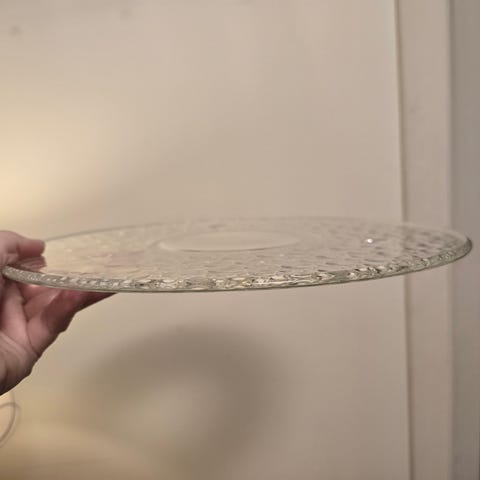 Fatet er helt og fint, det har en flott grønnfarge og er 29 cm i diameter.