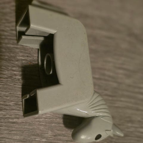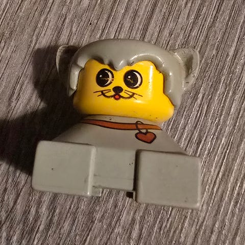 Denne lille katten er en LEGO Duplo-figur. Den er grå med hvite striper og poter, og er en del av LEGO Duplo-serien med dyrefigurer.