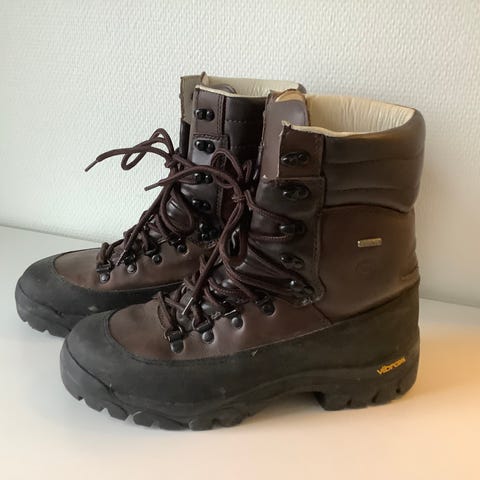 Ecco turstøvler i svart skinn med snøring og grov yttersåle. Overdelen kombinerer glatt skinn med tekstilpartier øverst på skaftet for økt fleksibilitet. Støvlene har høyt skaft for bedre ankelstøtte og kraftig mønstret såle som gir godt grep på variert underlag. Passer til tur og friluftsbruk.