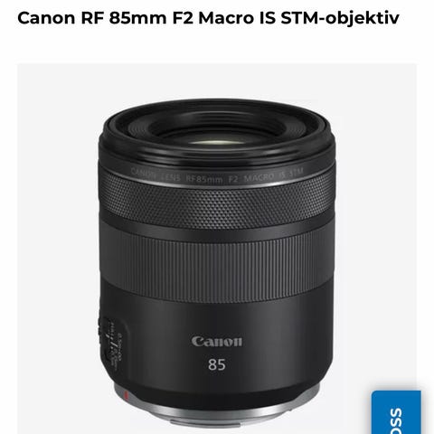 Selger en pent brukt Canon RF 85mm f/2 Macro IS STM i meget god stand.