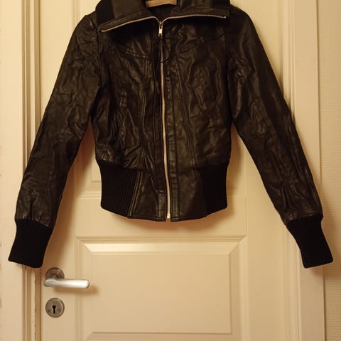 Vero Moda skinnjakke for dame i størrelse XS. Jakken er svart og laget av 100% saueskinn og 100% polyester på innsiden. Passer både til hverdags og fest. Nypris 2400kr