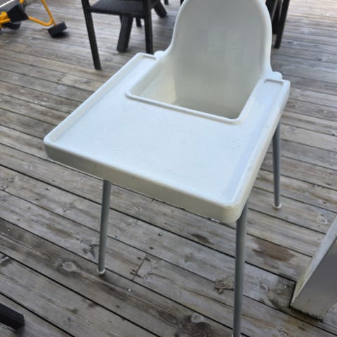 Flere barnestoler selges. ANTILOP babystol, CRITTER barnestol og LØMSK svingstol