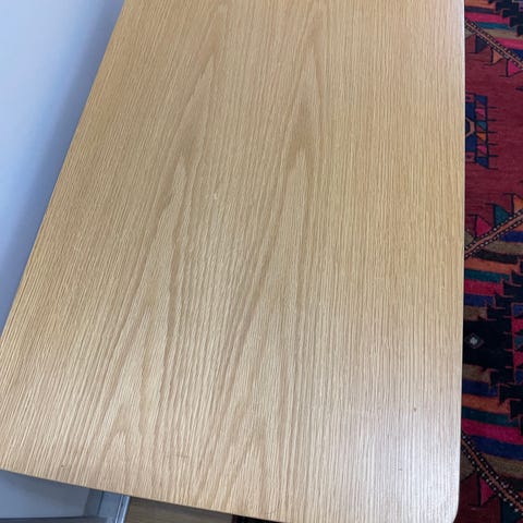 Pent brukt ergonomisk skrivebord med magebue og justerbare bein selges. Hull for ledninger og kabelskinne under pult for ledning o.l.