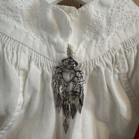 Helt ubrukt Romeriksbunad til gutt i størrelse 2–6 år. Komplett sett med skjorte, bukse, vest og Espeland-sølv (sølje + mansjetter).Følger også med strømper, hoseremner og jakke. Nypris totalt ca. 11 300 kr.