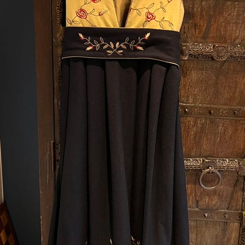 Maxemilia festdrakt i str 158-164 . Skjorten er i str. 152, men passer fra 152 -164. Gildelås og trykknapp i skjorten, borrelås på beltet rundt stakken. Veldig fint og tungt stoff som faller fint. Kun brukt noen få timer. Sølv og sjerf følger ikke med.