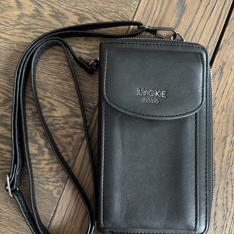 LYCKE mobilveske/skulderveskei grønt kunstlær for dame. Vesken har smal skulderrem og rektangulær fasong. Den lukkes med glidelås rundt hovedrommet og har i tillegg en frontlomme med klaff og knapp.til å ha mobil i.Innvendig er det flere rom, inkludert kortlommer og et midtrom med glidelås, egnet for oppbevaring av mobil, kort, kontanter og småting. Passer som kompakt hverdagsveske eller liten mobilveske. Koster 299 ny