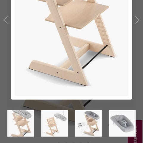 Babyset til Stokke Tripp Trapp stol. Kjøpt ny 2023. Støtte til stolbein medfølger ikke. Tåler oppvaskmaskin.