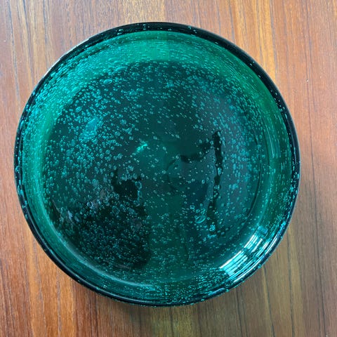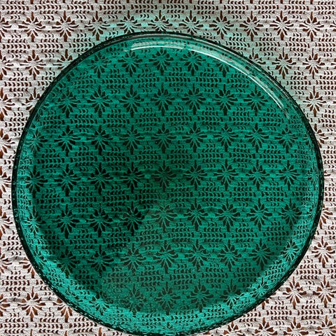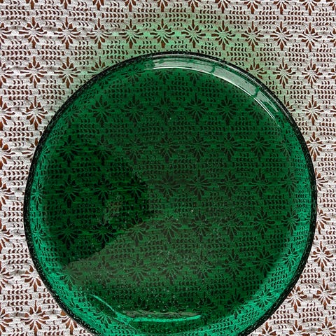 Grønland fra Hadeland Glassverk glassfat i grønt glass. Fatene har en rund form og er laget i gjennomfarget glass med boblestruktur. Egner seg til servering av for eksempel kaker, frukt eller andre retter, eller som dekorative fat i interiøret. Selges som sett slik som vist på bildene.