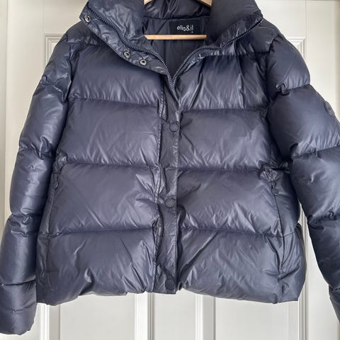 Selger Indie Down Jacket fra Ella&il i størrelse xs i fargen midnight black. Tøff, kort pufferjakke med høy krage, luftig og myk. Består av 80% andedun og 20% fjær.