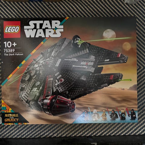 LEGO Star Wars 75257 Millennium Falcon byggesett. Modellen forestiller romskipet Millennium Falcon fra Star Wars-universet. Settet består av LEGO-klosser til bygging av romskipet med detaljer både utvendig og innvendig. Egnet for bygging, lek og utstilling for personer som liker LEGO og Star Wars-tema. Boksen er har desverre sett sine bedre dager. Ellers alle posene og bruksanvisning intakt. 😃