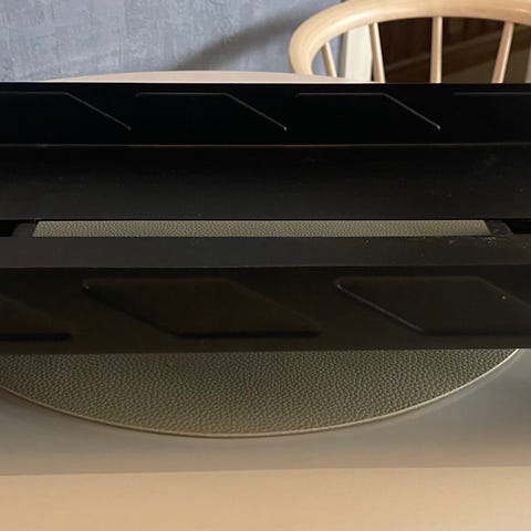 Stativ for pc-skjerm på skrivepult eller bord. Justerbar høyde, vertikal og horisontal skjermvinkel. Fungerer godt, men noen riper (se bilder).