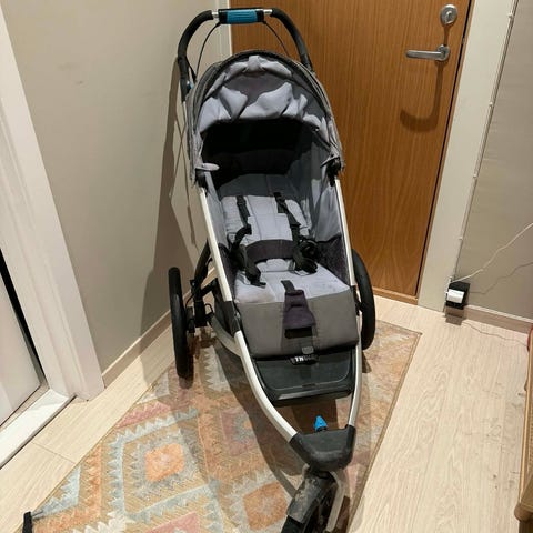 Godt brukt Thule urban glide2 løpevogn med masse bruk igjen selges med basinett som passer fra nyfødt. Selges også med endel ekstra utstyr. Følger med mygnetting, regntrekk og adaptere til basinett. Har også bilstoladaptere som er brukt til BeSafe babybilstol. Følger også med myggnett, regntrekk og bøyle til liggedelen. I tillegg er det også veske som kan festes på vogna, med flere ulike rom.