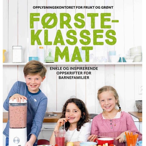 «Førsteklasses mat» kokebok med enkle og inspirerende oppskrifter for barnefamilier. Boken inneholder fargerike og varierte retter basert på frukt, grønt, kjøtt og andre hverdagsingredienser. Oppskriftene er tilpasset familiemåltider og viser forslag til både varme retter, pålegg, matpakker og enkle desserter. Illustrert med fotografier av ferdige retter og stegvis presentasjon av måltider. Utgitt i samarbeid med Opplysningskontoret for frukt og grønt og Kagge Forlag.