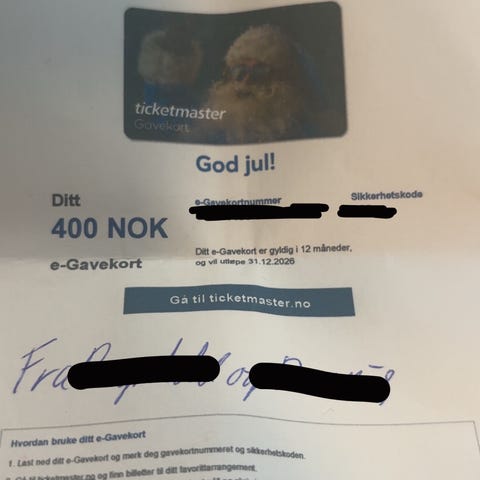 Gavekort på Ticketmaster 500 kr.