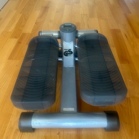 Mini stepper med motstandsbånd perfekt til trening for hele kroppen. LCD-skjerm viser tid, kalorier, trinn, skanning og trinn/tid. Mål: 43 x 23 x 46 cm. Vekt: 6 kg.
