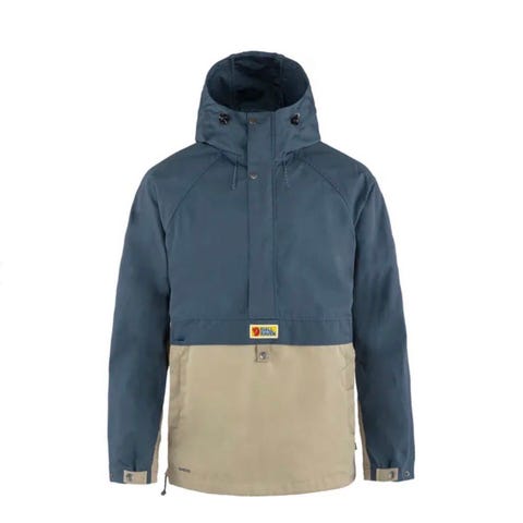 Fjällräven High Coast Wind Anorak jakke for herre i størrelse M. Jakken er blå/navy. En lett anorakk med halv glidelås i front, hette og justerbar snøring nederst. Egnet som vindjakke til tur og hverdagsbruk.