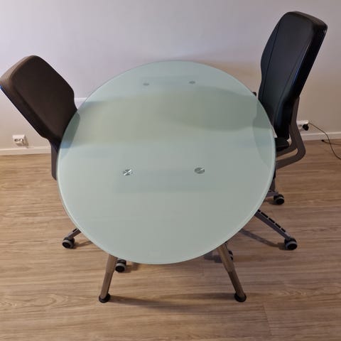 Fin kontorstol jeg har trivdes godt med, men passer dessverre ikke nytt kontor-oppsett her. Kneputen kan justeres i flere høyder. Stolen har praktiske jul og er nett nok til at jeg har kunnet skyve den helt under skrivebordet og ute av synet når den ikke er i bruk.
