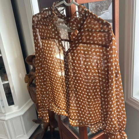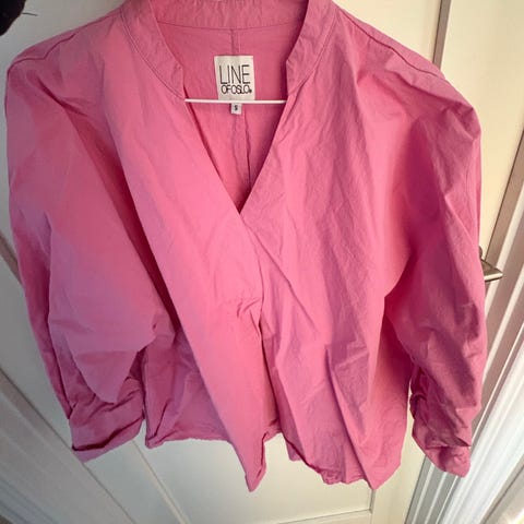 Blusen er ikke brukt, men lappen er tatt av. Nydelig blondebluse med gjennomsiktige armer og for i front og rygg.