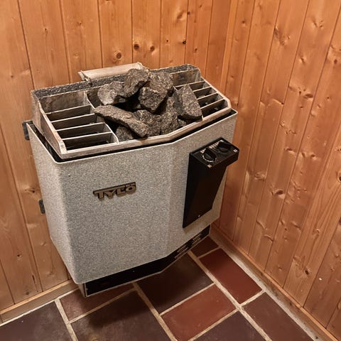 Selger hel og fin elektrisk badstueovn, da jeg skal ha en litt større til badstua hjemme. Denne er 8kw og varmer godt til 7-12m3.