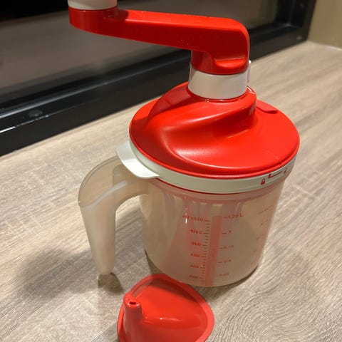 Tupperware manuell hakker i rød plast.