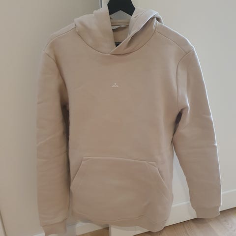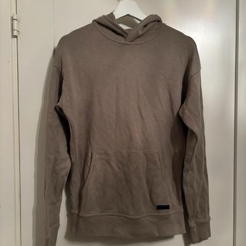 Holzweiler hettegenser for herre i beige farge, størrelse M. Genseren har hette og stor kengurulomme foran. Modellen har ribbestrikkede mansjetter og ribbekant nederst. Nøytral ensfarget design egnet til hverdagsbruk.